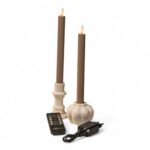 Das Set besteht aus zwei Stabkerzen mit einer Höhe von 250 mm, einer Fernbedienung,