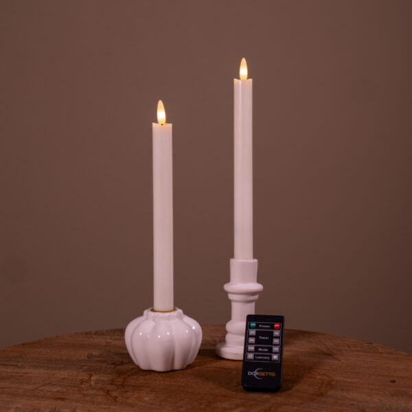 Set aus 2 weißen Dorsetto LED-Stabkerzen mit Fernbedienung.