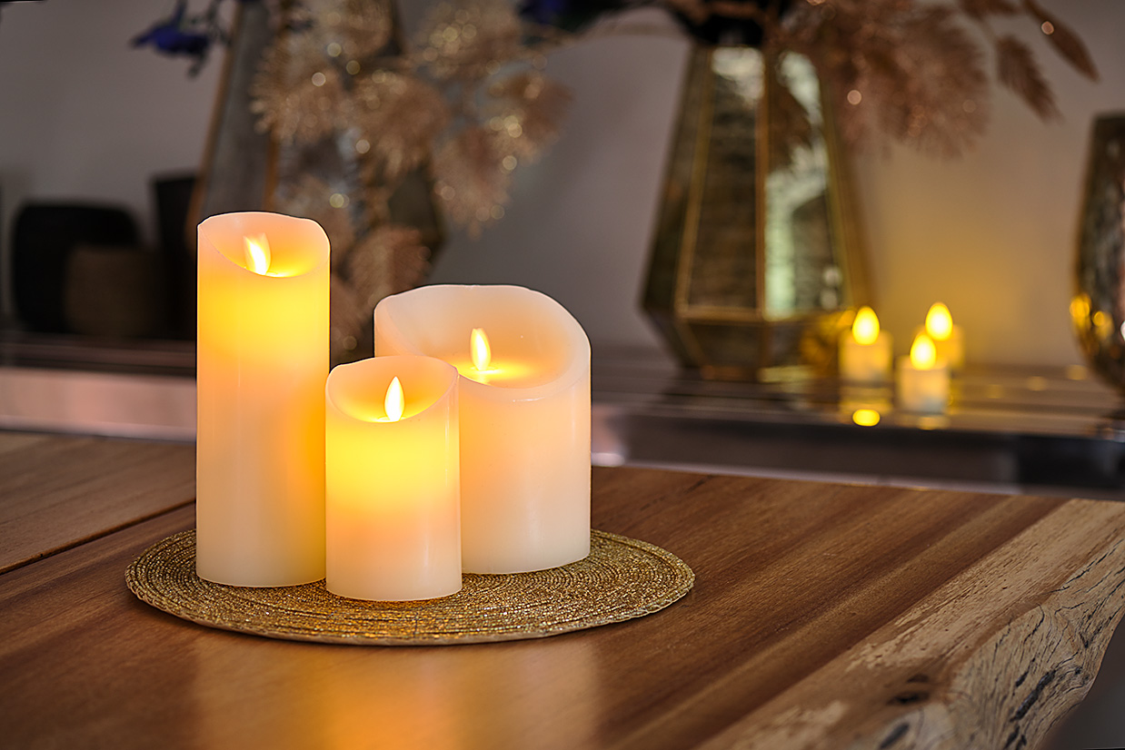 LED-Wachskerzen-Set – 3 Kerzen warmweiß – aufladbar – DORSETTO