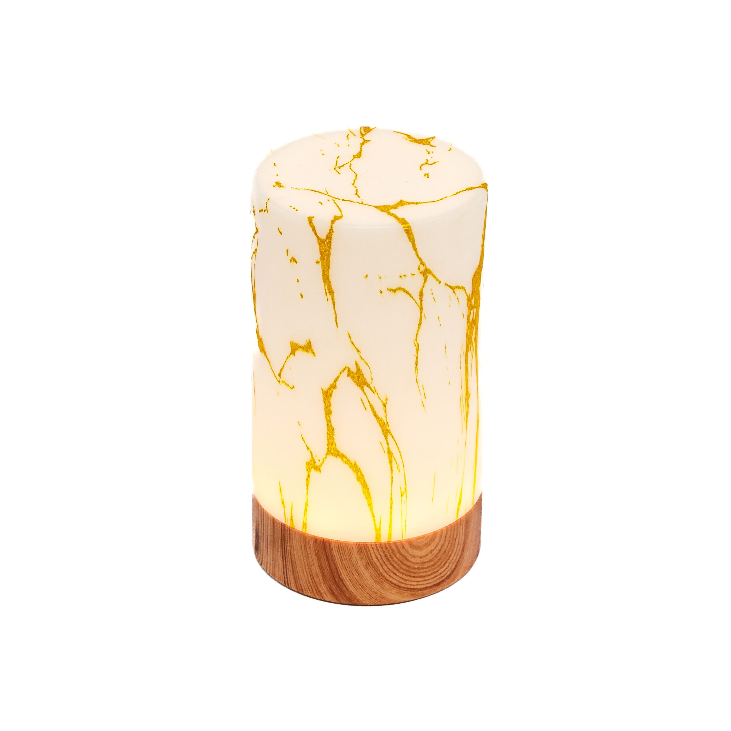 Tafellamp DORSETTO oplaadbaar 105 uur – waterdicht -cilindervorm- marmer goud houtlook- met afstandsbediening