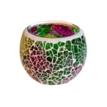 Ein Teelichthalter aus hochwertigem, mehrfarbigem Glasmosaik.