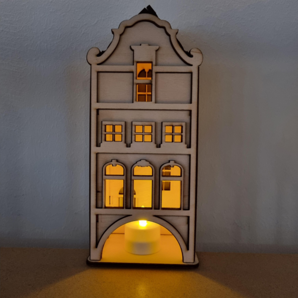 Dieses stilvolle Holzhaus eignet sich ideal für die Platzierung von LED-Teelichtern und sorgt für eine gemütliche, einladende Atmosphäre in jedem Raum.