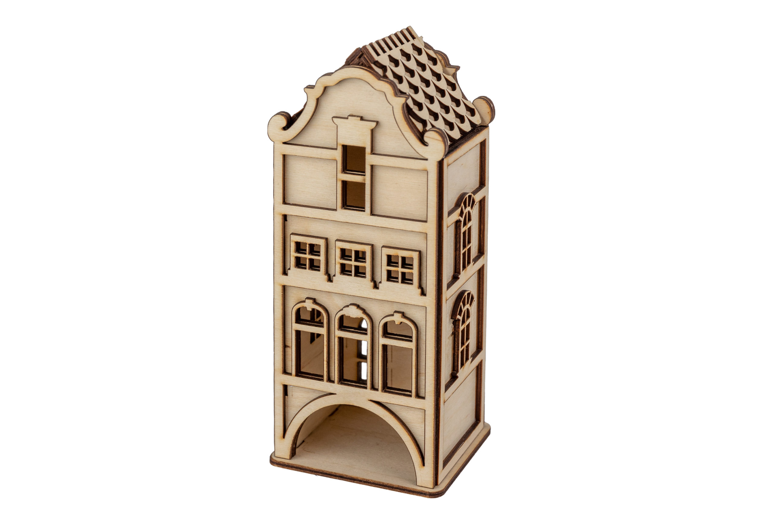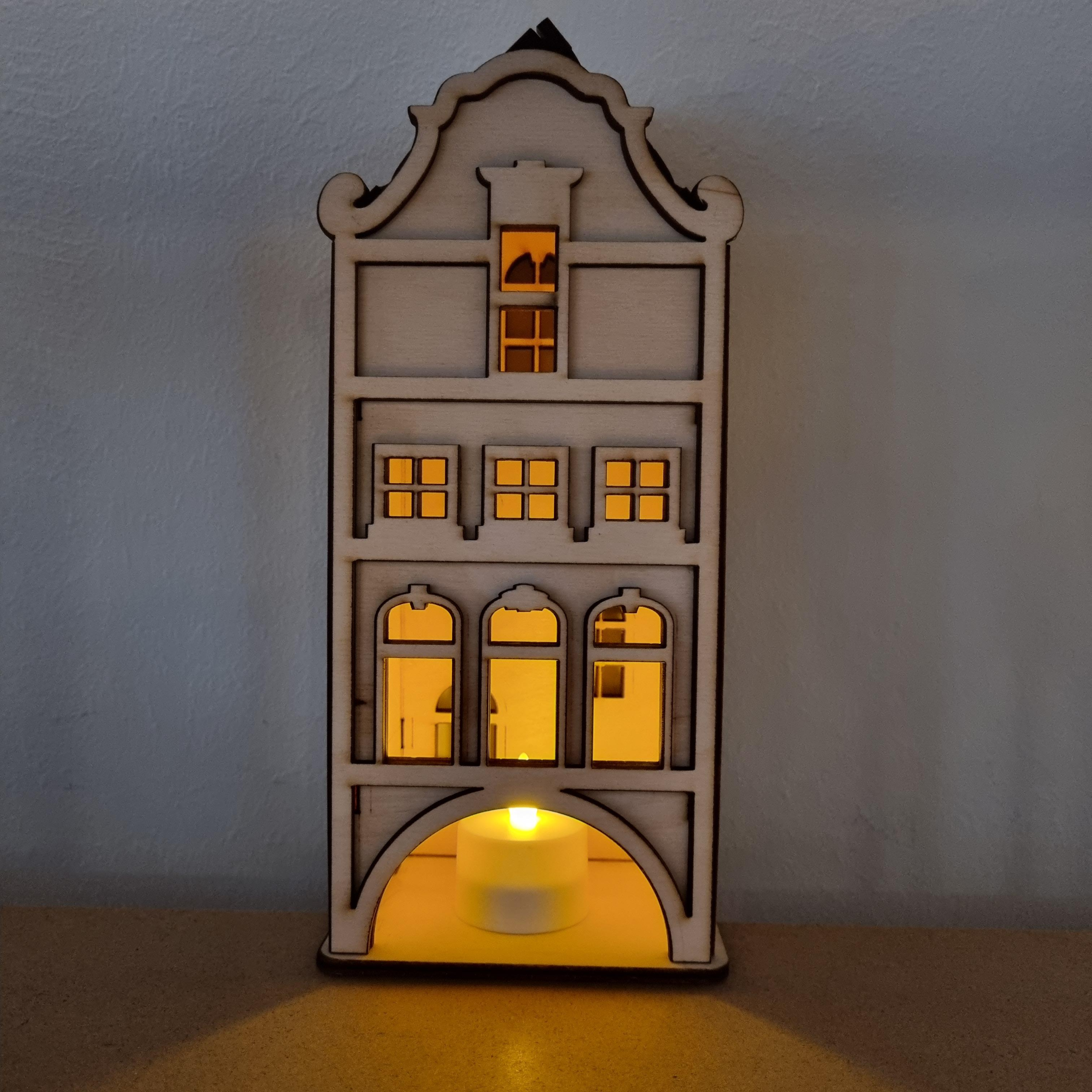 Dieses stilvolle Holzhaus eignet sich ideal für die Platzierung von LED-Teelichtern und sorgt für eine gemütliche, einladende Atmosphäre in jedem Raum.